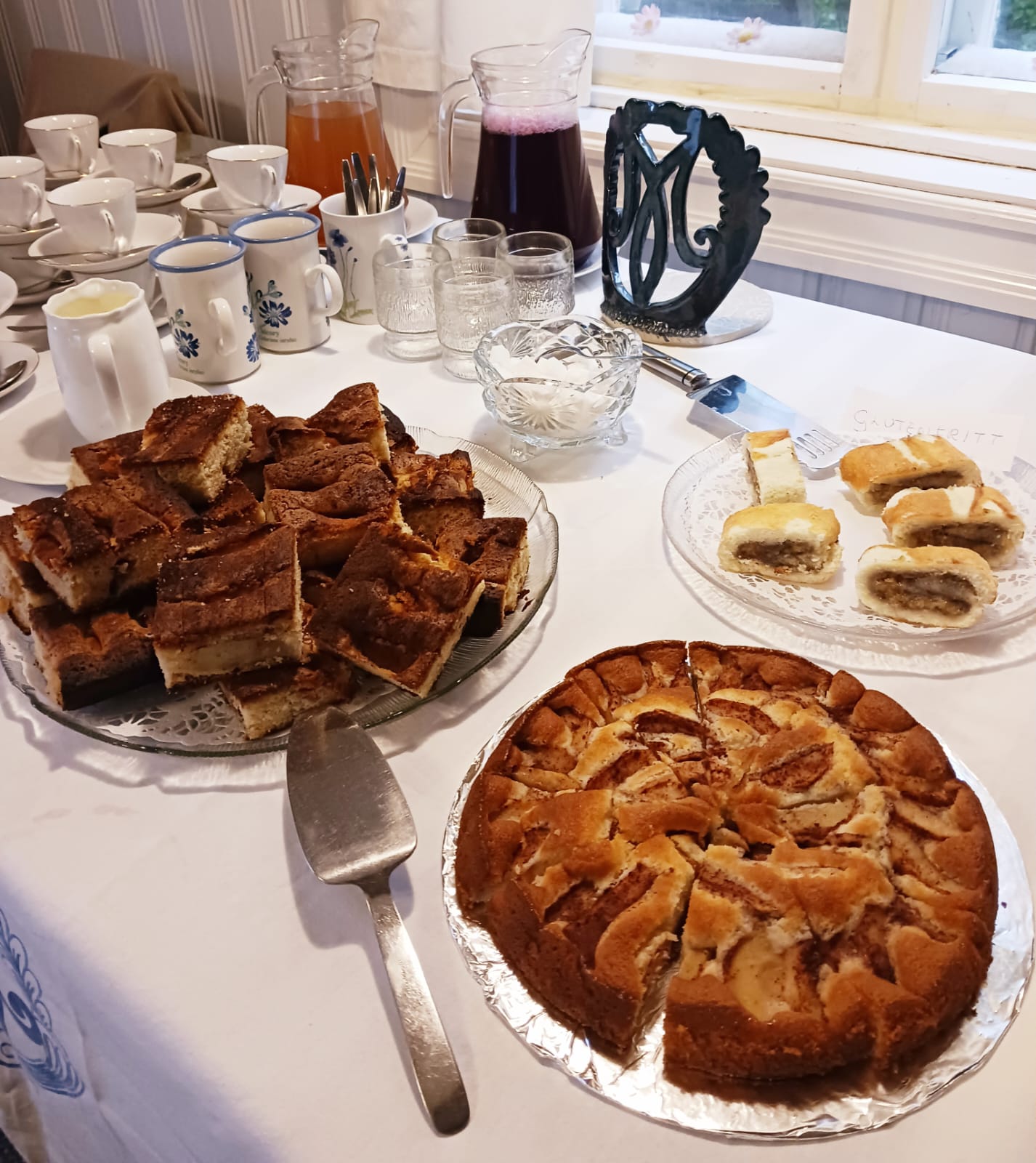 Inne i stugan kunde man köpa en kopp kaffe + äppelkaka med vaniljsås.